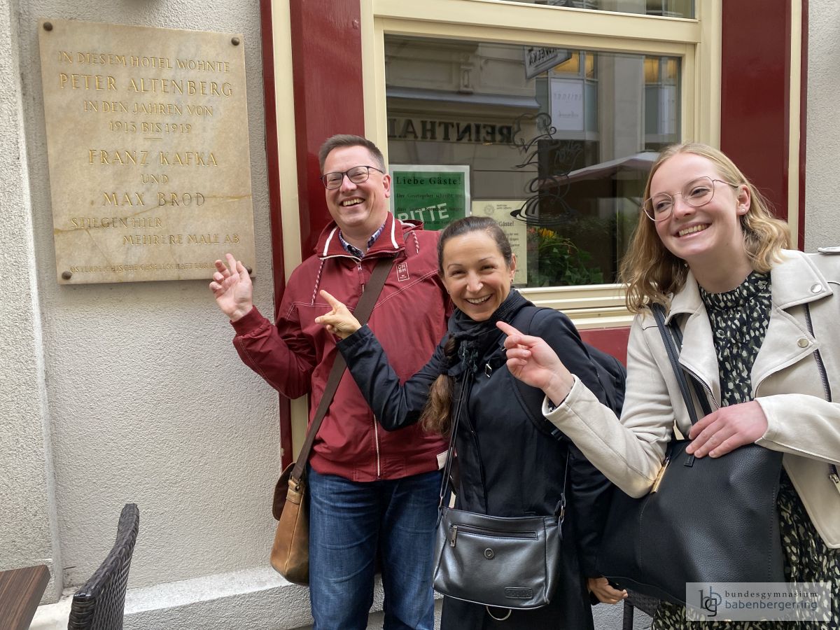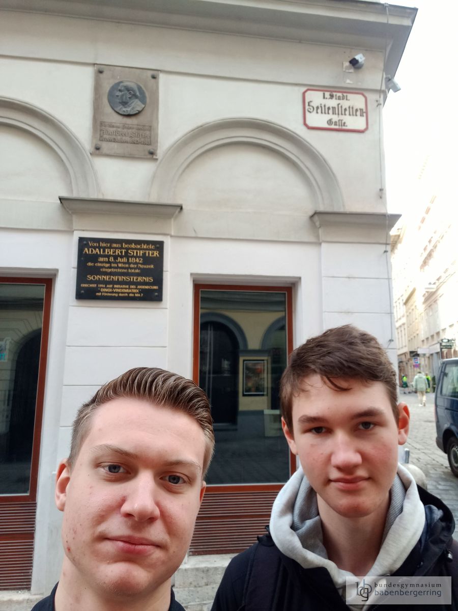 Am 3. November 2022 machten sich alle Schülerinnen und Schüler der 8. Klassen des Bundesgymnasium Babenbergerrings nach Wien auf, um die Exkursion „Literarischen Spaziergang“ zu absolvieren. Die Schülerinnen und Schüler hatten im Vorfeld im Rahmen des Deutsch-Unterrichts diese Exkursion vorbereitet, indem in Zweiergruppen jeweils ein Autor/eine Autorin bearbeitet wurde, der/die einen Wien-Bezug aufweist. Im Rahmen des Vormittags bewegten sich die Gruppen frei durch Wien, um Gedenkstätten, Statuen bzw. Orte zu besuchen, die im Leben dieses Autors/dieser Autorin eine Rolle gespielt hatten. So konnten in Summe 25 Autorinnen und Autoren „er-spaziert“ werden, zum Beispiel Johann Nestroy, Arthur Schnitzler, Stefan Zweig oder Franz Kafka, aber auch Walther von der Vogelweide, Johann Wolfgang von Goethe oder Thomas Bernhard. Zudem wurde die künstlerische Aufgabe an die Gruppen gestellt, ihre Anwesenheit an diesen Orten mit einem Selfie/einem Foto zu dokumentieren. Neben der Auseinandersetzung mit den Texten dieser Künstler konnte während dieser Exkursion also auch der literarischen Atmosphäre nachgespürt werden, die in Wien schon immer geherrscht hat, selbstverständlich war daher auch genug Zeit für einen Kaffeehaus-Besuch oder eine längere Pause in einem der vielen Parks der Stadt, um das schöne Wetter zu genießen. Nächste Woche werden die Ergebnisse im Deutsch-Unterricht gesichert und in einer jahrgangsübergreifenden Power-Point-Präsentation gesammelt.