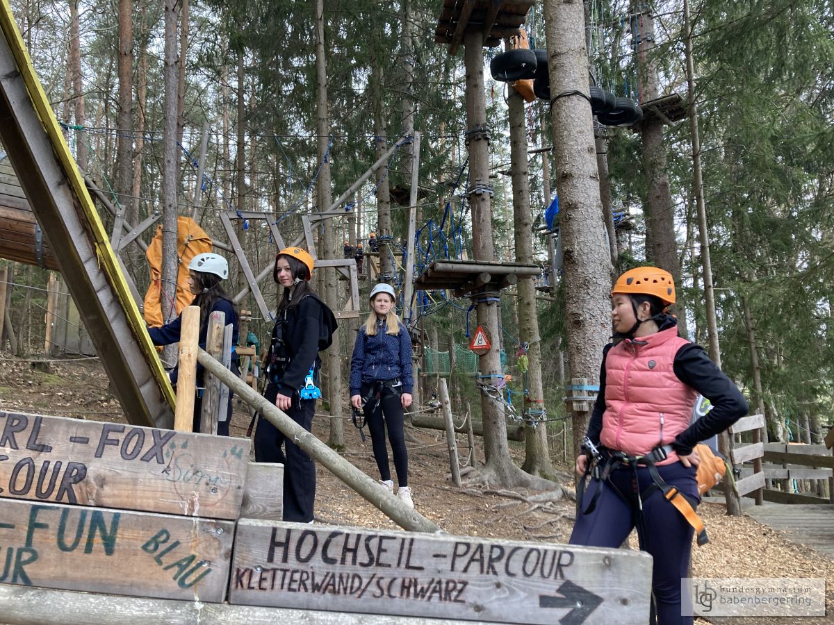 Zur Einstimmung auf die gemeinsame Sommersportwoche am Gardasee erkundete die 5A und die 5B den Kletterpark in Wartmannstetten, Bezirk Neunkirchen. Die vielfältigen Kletterparcours haben unvergessliche Klettererlebnisse für Anfängerinnen und Anfänger sowie auch erfahrene Klettererinnen und Kletterer geboten. Dem leichten Nieselregen zu trotz konnten Teamgeist, Spaß und Action in der Natur genossen werden.